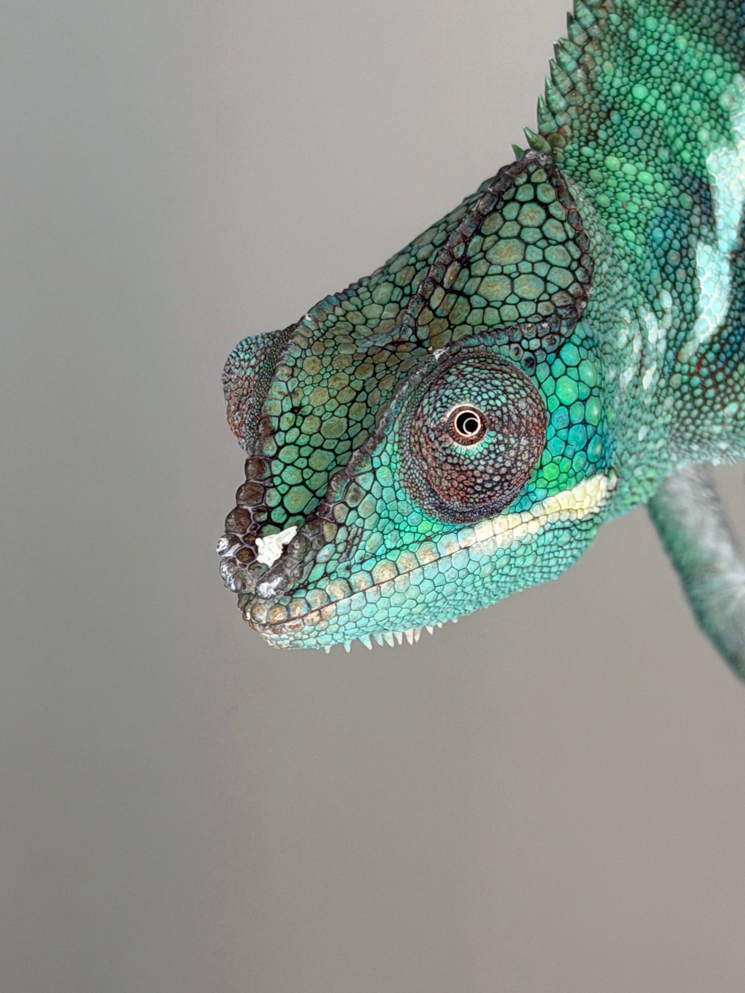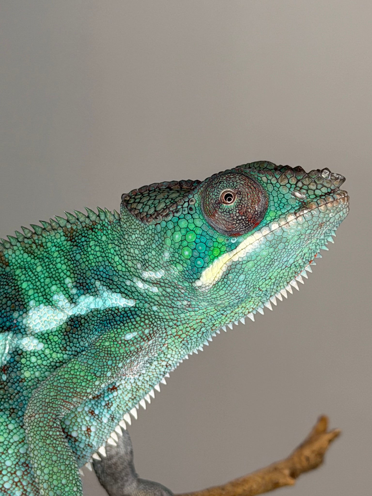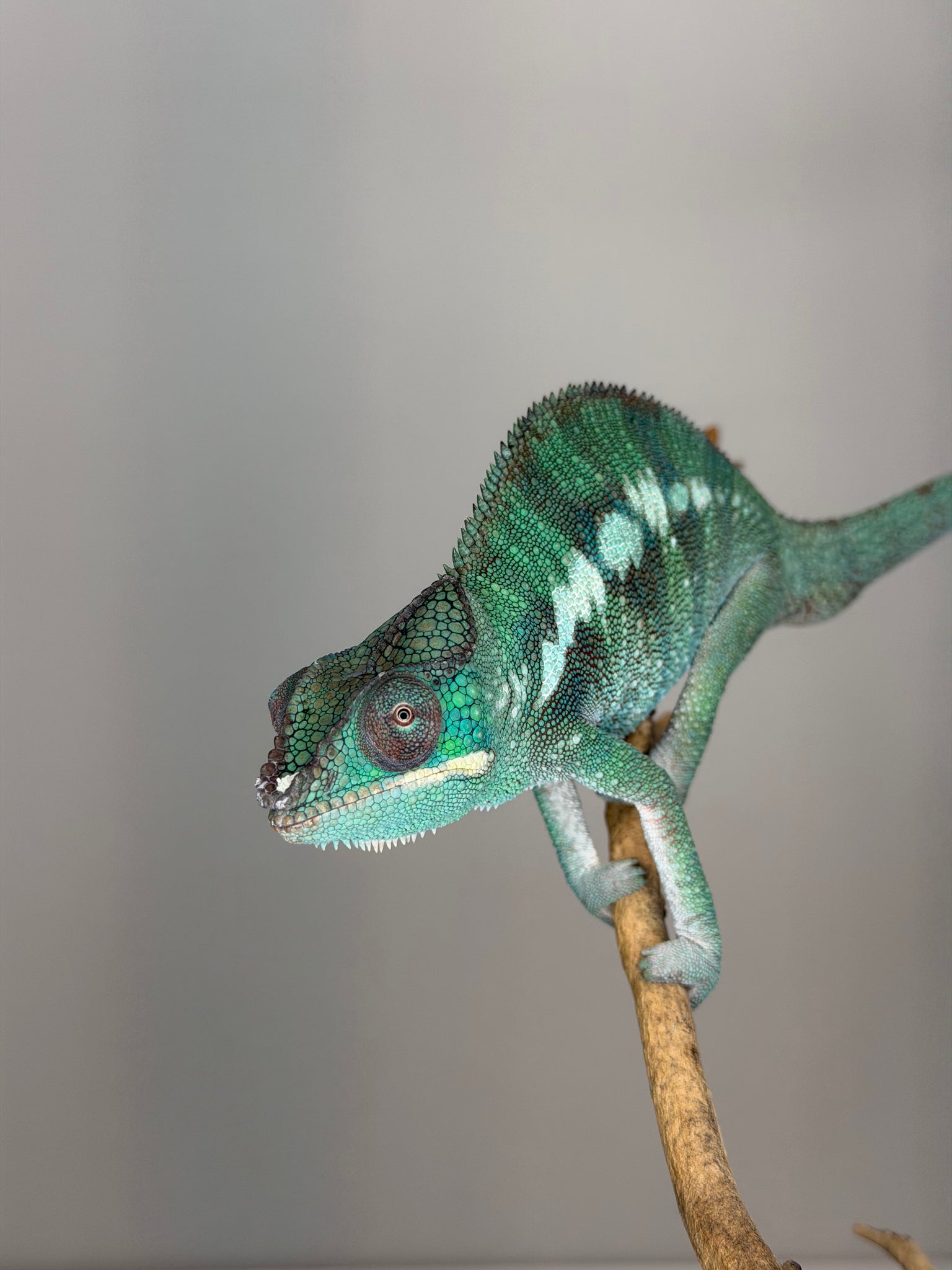 Male panther chameleons undergo an amazing color transformation as they mature. At 3-4 months (the typical age sold on our site), their colors are just beginning to develop.
