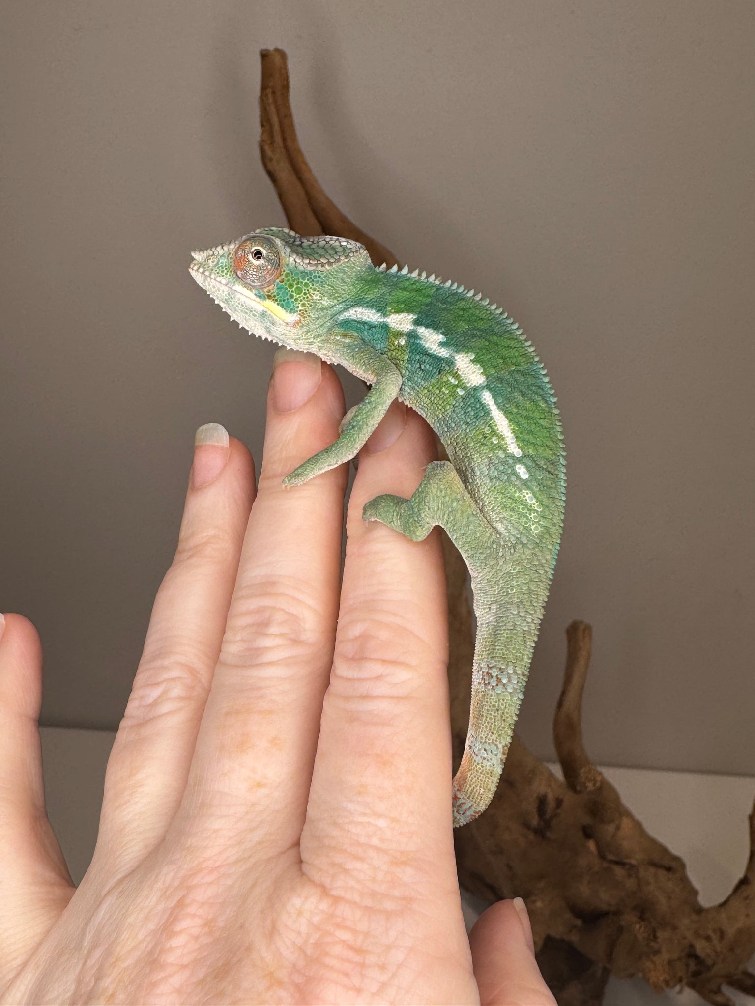 🌿 Raised with Expert Care — every chameleon is handled daily and fed the highest-quality diet to ensure vibrant color and a confident personality.