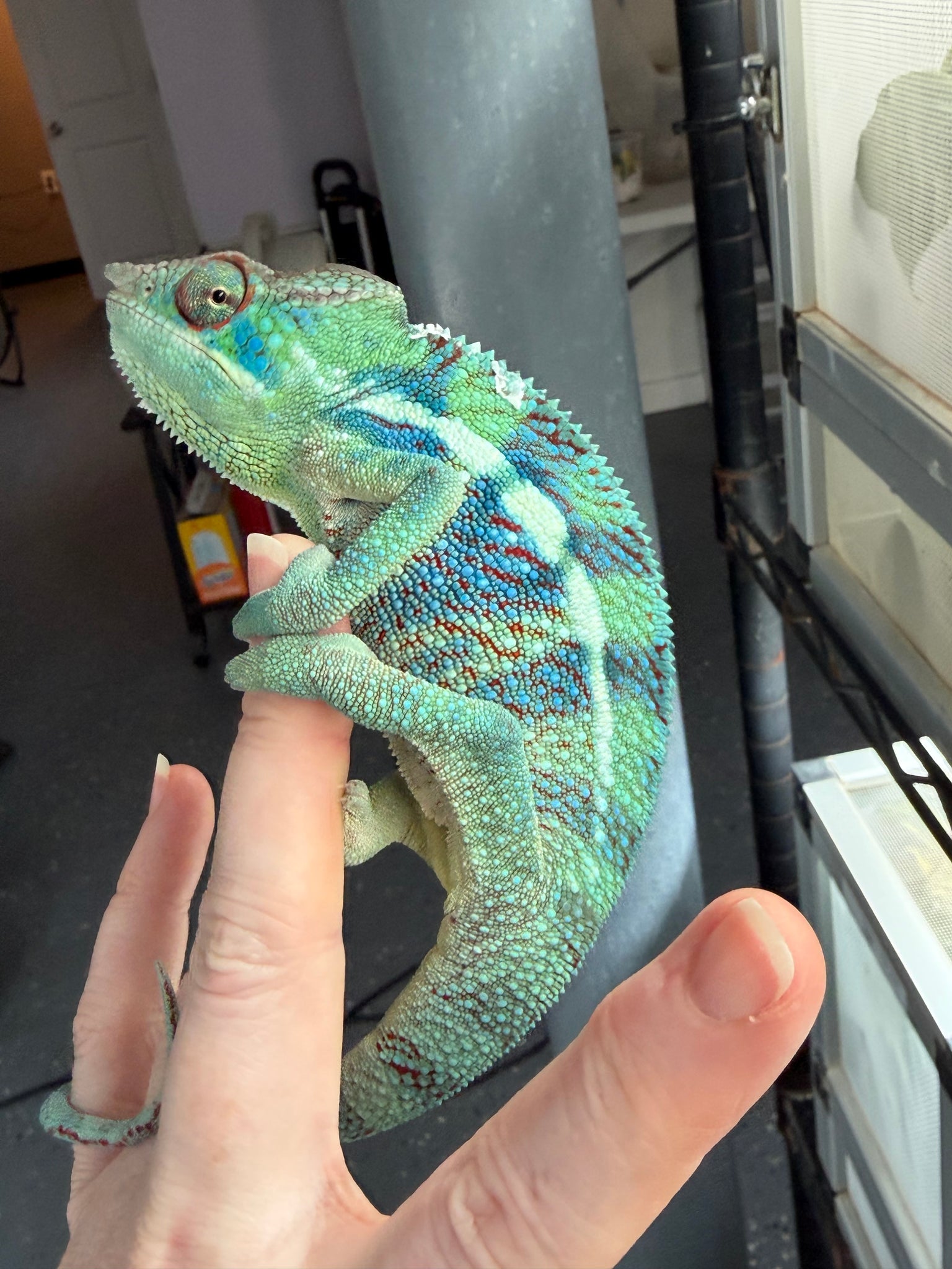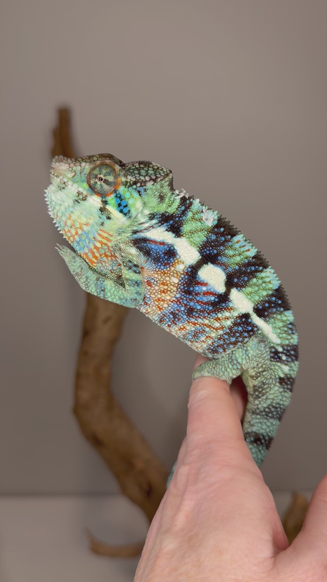 Bring home a chameleon that’s already showing the signature Ambanja contrast and confidence—this guy has serious visual impact with plenty of personality to match.