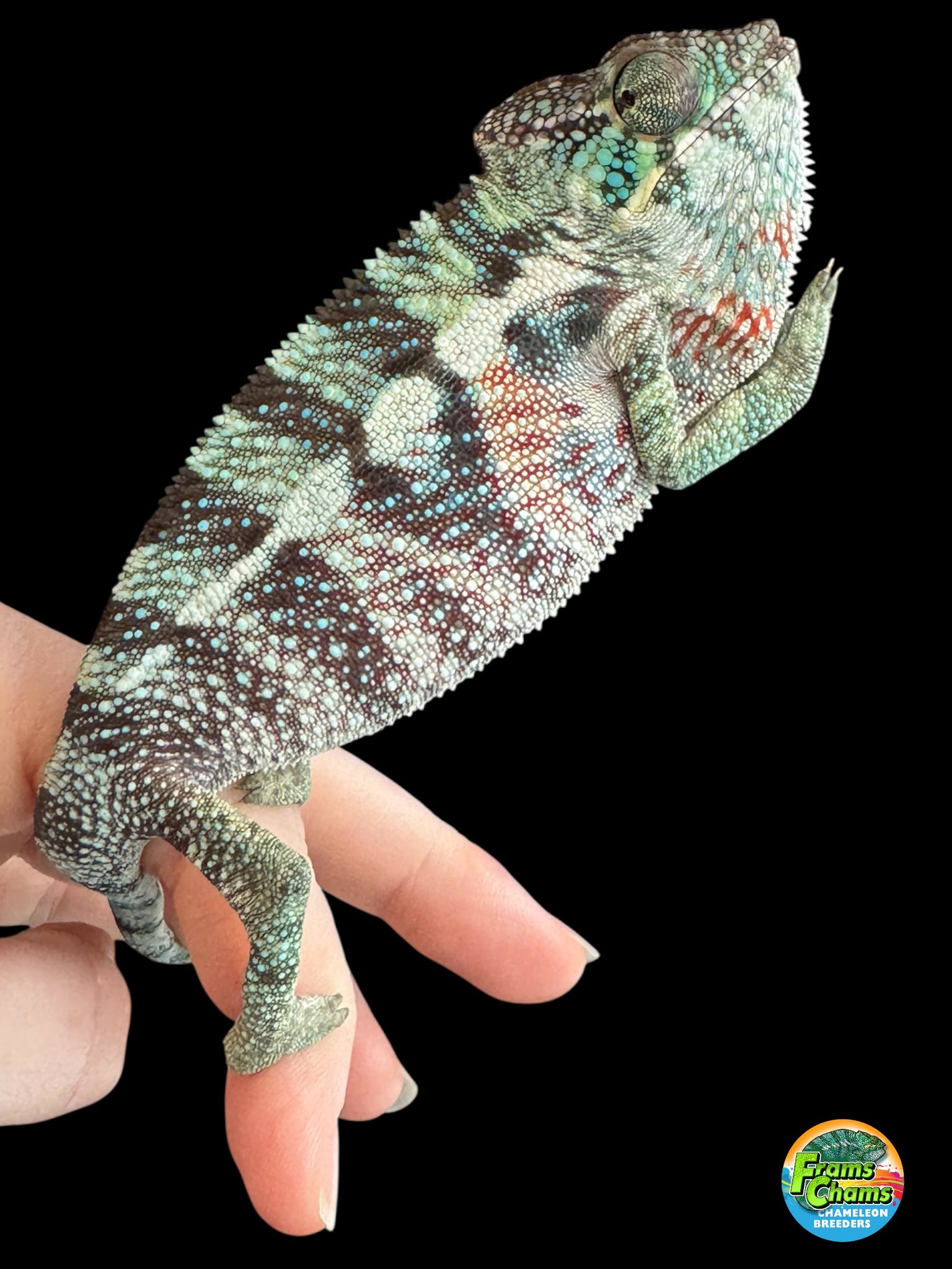 This young Ambanja Panther Chameleon from FramsChams definitely has attitude! With a confident stance and those signature Ambanja blues, greens, and pops of red, he’s not just eye-catching—he’s unforgettable. Every Ambanja is a living masterpiece, but this one brings extra personality to the mix.