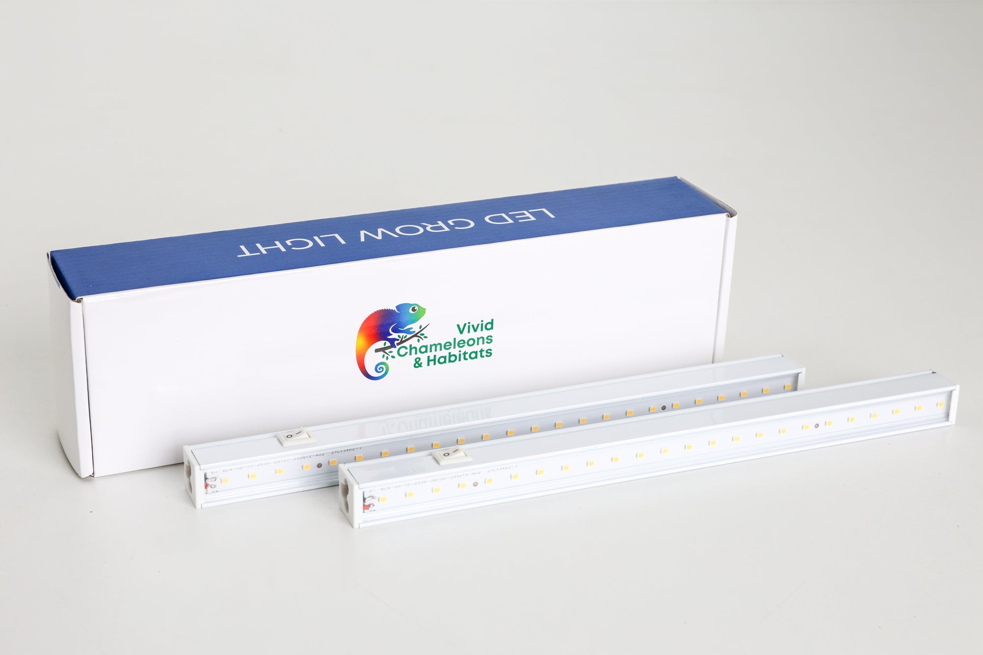 There are 2pcs of 12" length T5 LED 5000K Grow light that can grow your live plants and your chameleon! Chameleons are very visual, so they need bright light to help them see clearly for hunting their prey!  If your enclosure has black mesh on the top, then I recommend to use both LED bar with the linkable cable and a power cord. This will help them to see clearly where the bugs are.