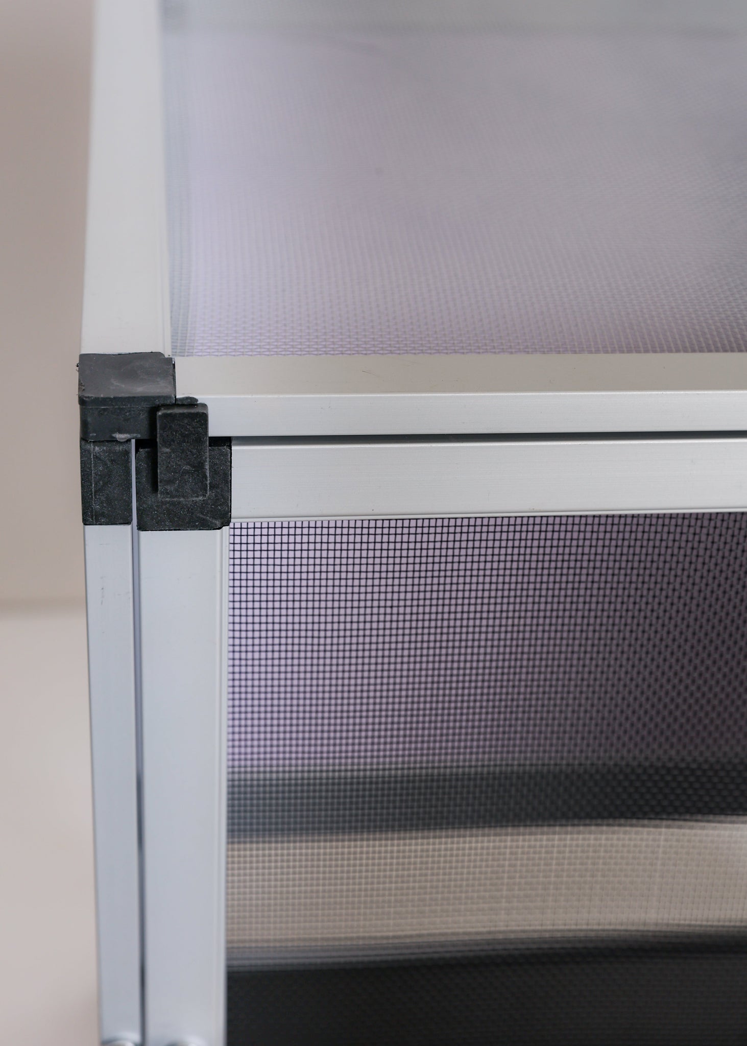 Top: White heavy duty aluminum mesh screen for increased cage brightness