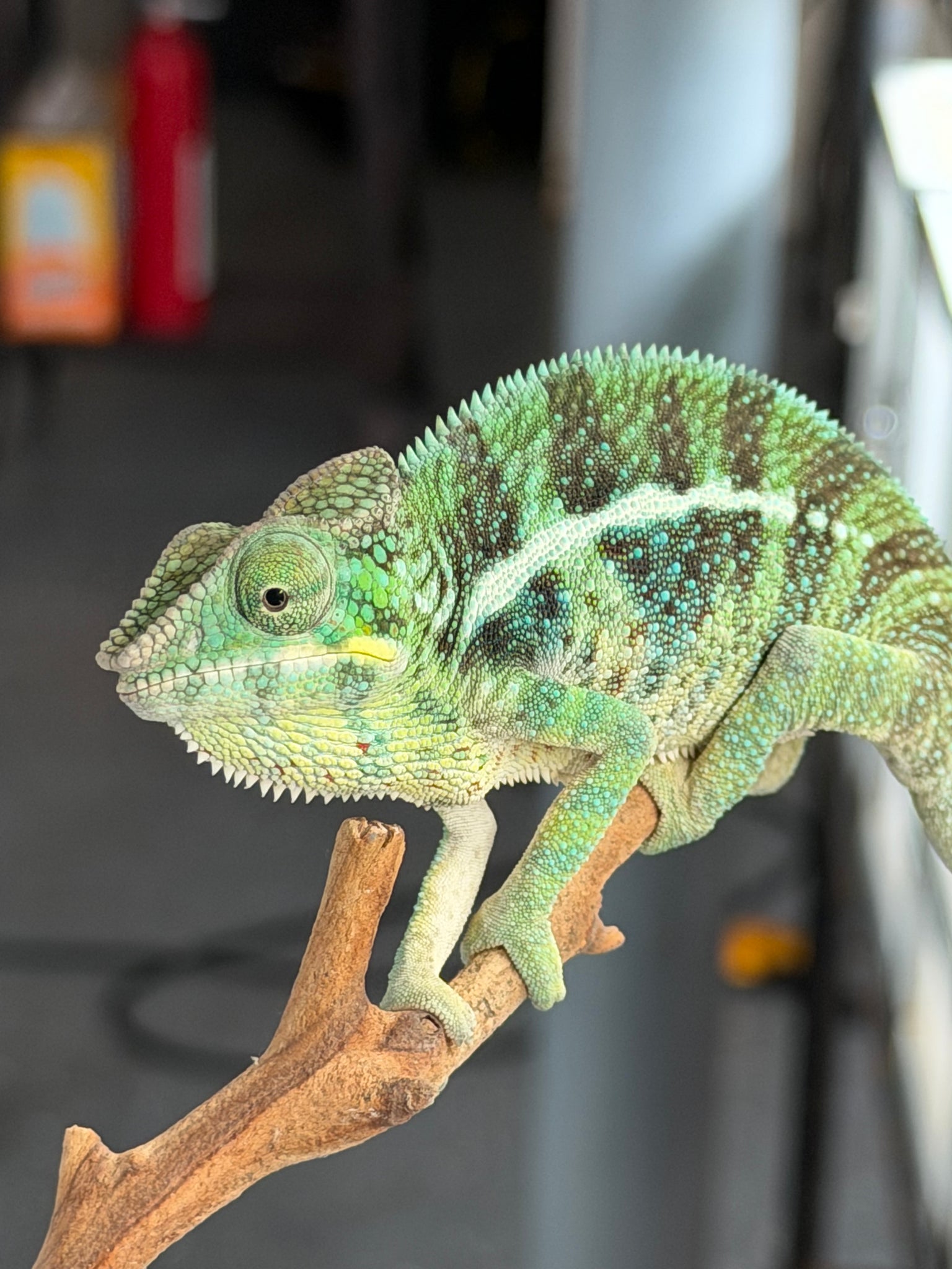 This chameleon is pet-only and not intended for breeding, making him a perfect companion for chameleon enthusiasts who want dazzling color and a gentle temperament without concerns about locale purity.