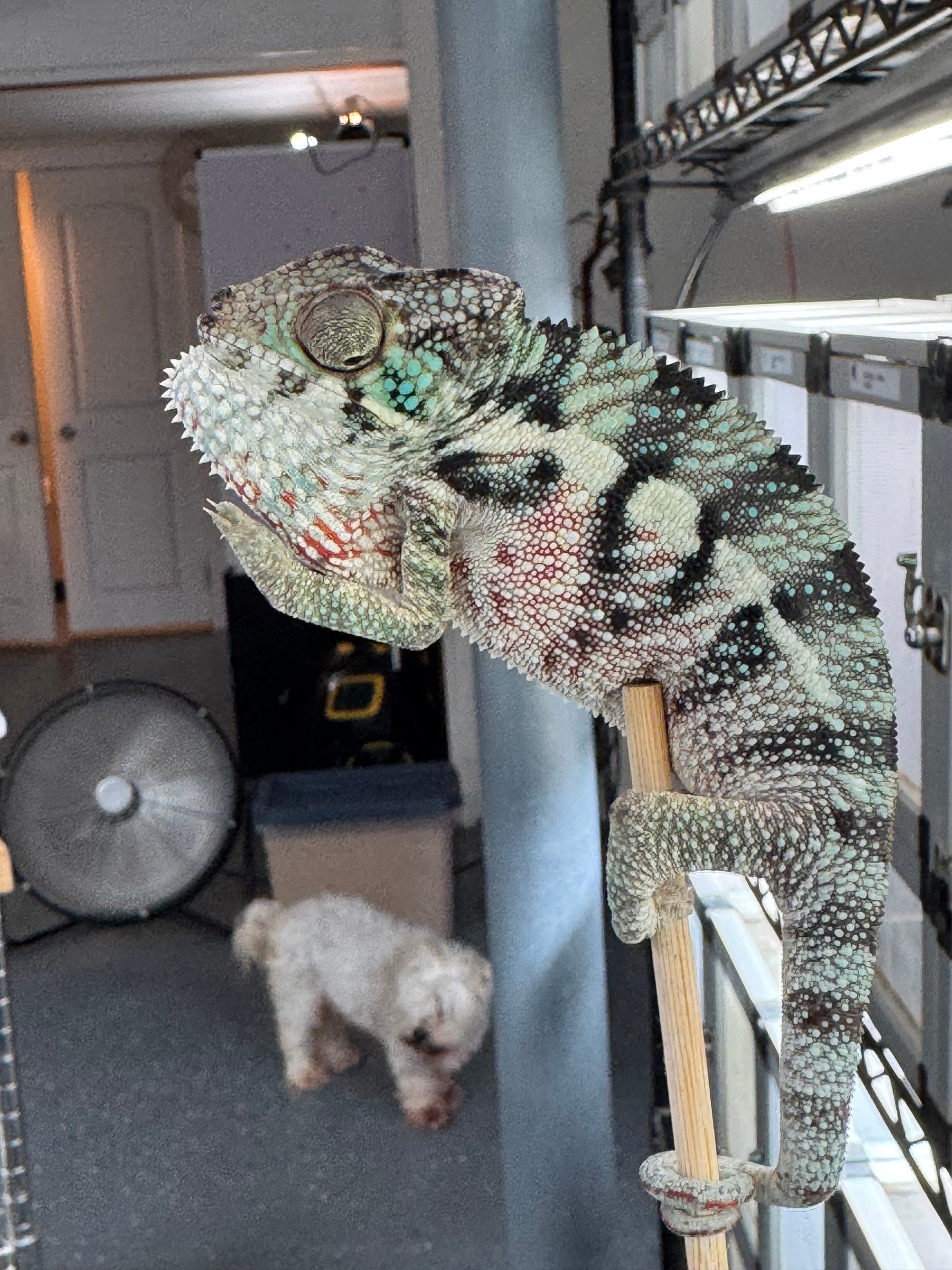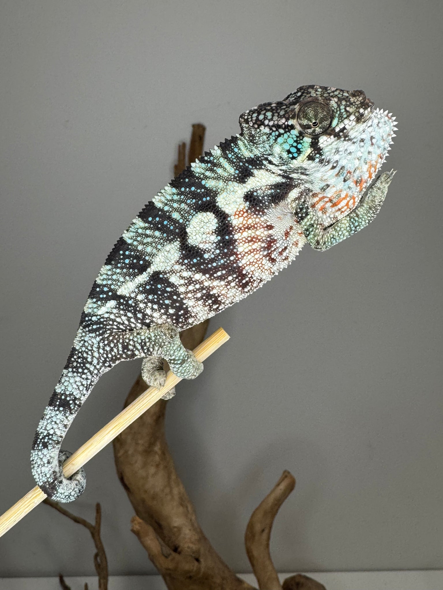This young Ambanja Panther Chameleon from FramsChams definitely has attitude! With a confident stance and those signature Ambanja blues, greens, and pops of red, he’s not just eye-catching—he’s unforgettable. Every Ambanja is a living masterpiece, but this one brings extra personality to the mix.