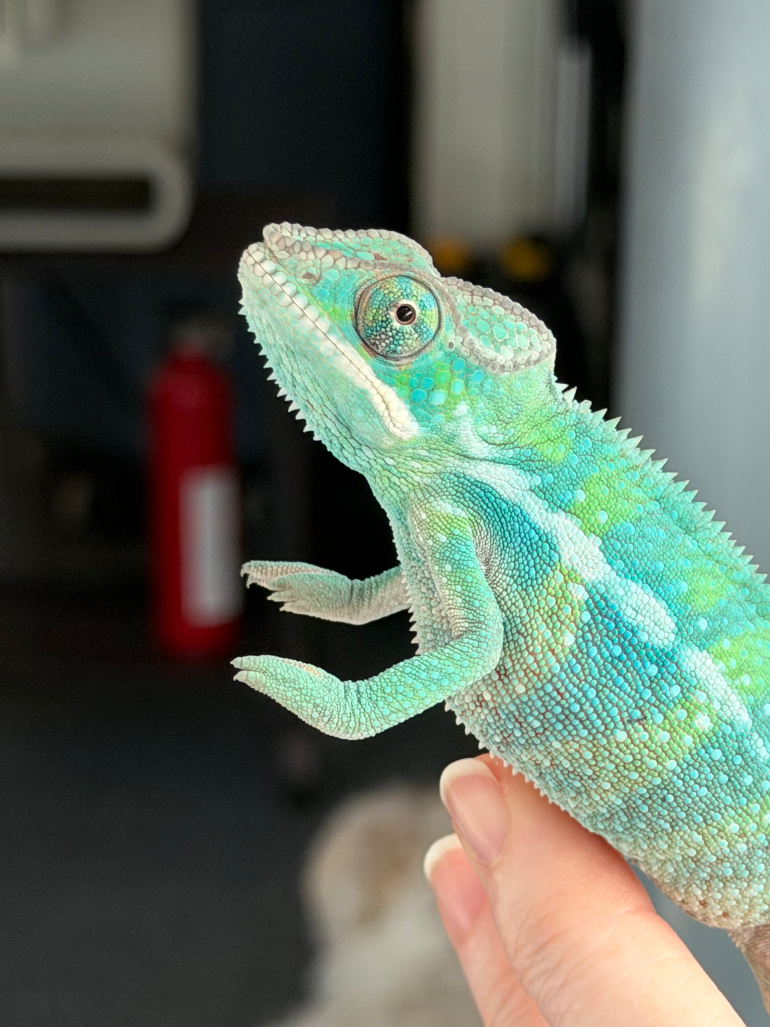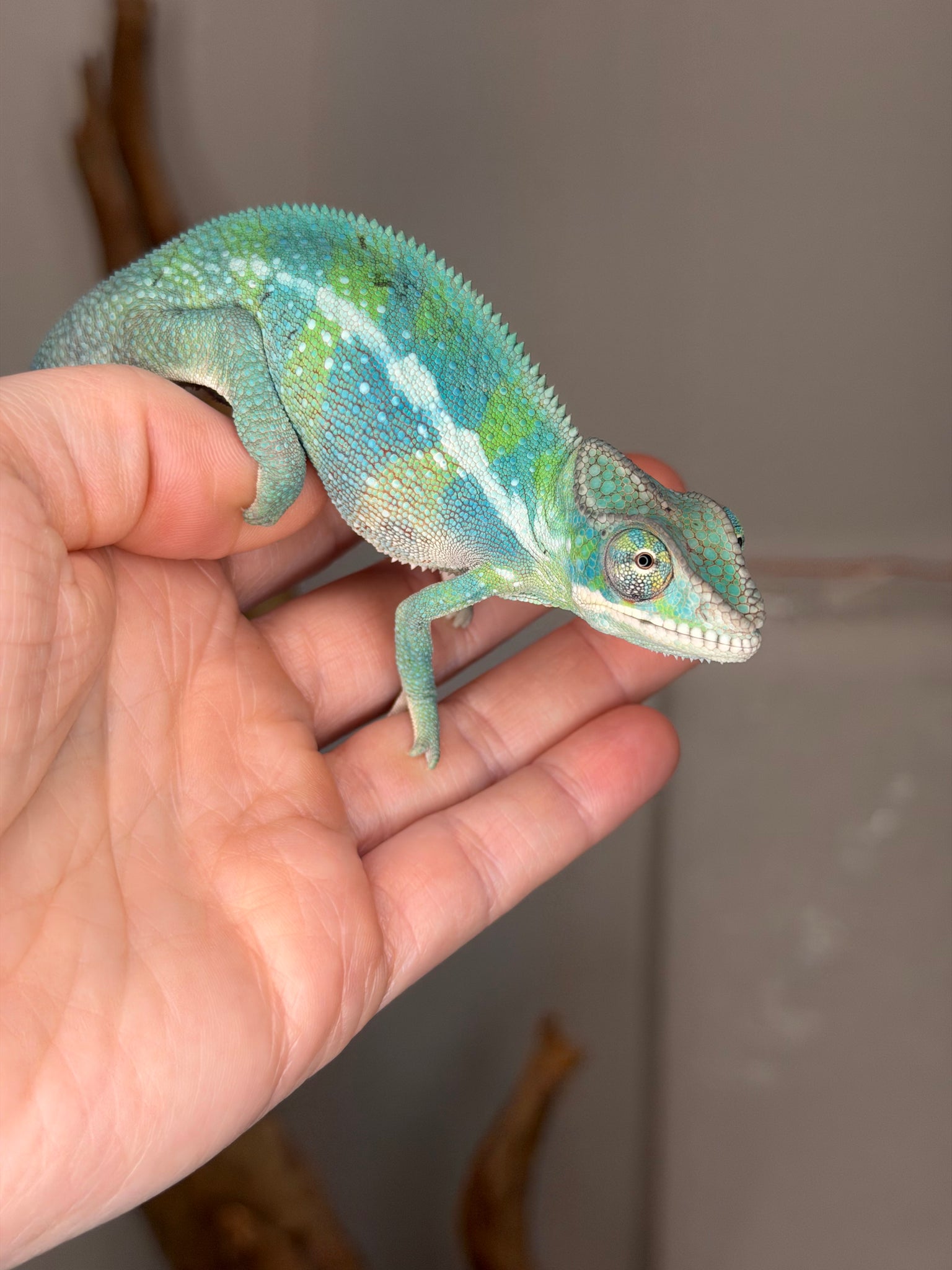 Meet this handsome male Ambilobe Panther Chameleon – Flash Jr. x Aslan Juvenile! 🌈